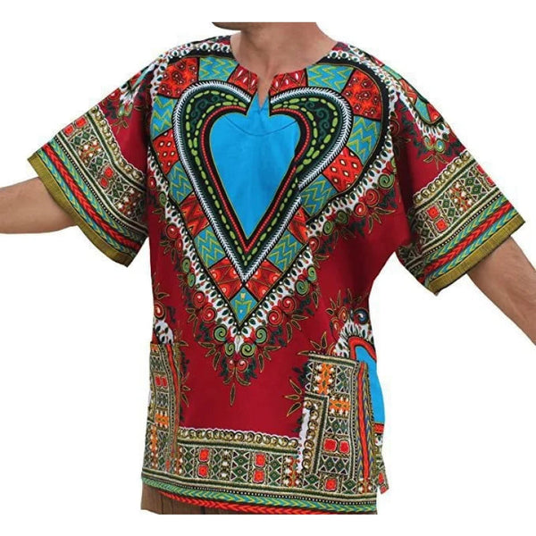 Men's Red African Primitive Tribal Ethnic 3D Printed Short Sleeve Shirt