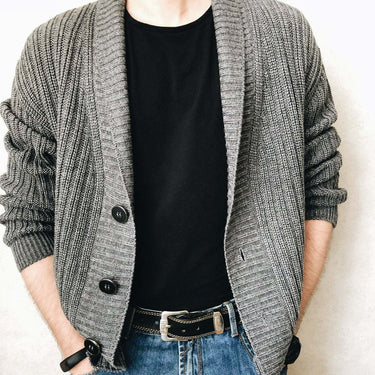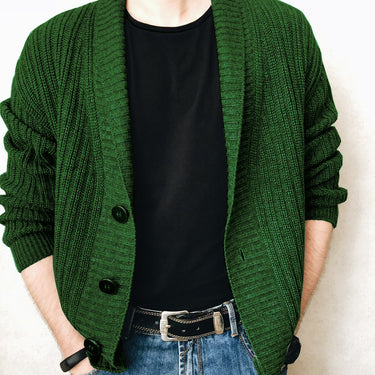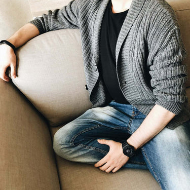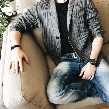 Men's Simple Solid Knitted V Neck Long Sleeves Cardigan Sweater for Winter