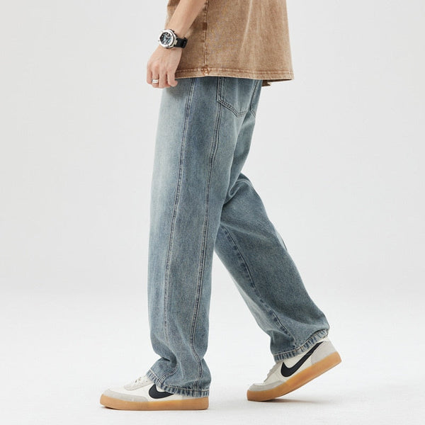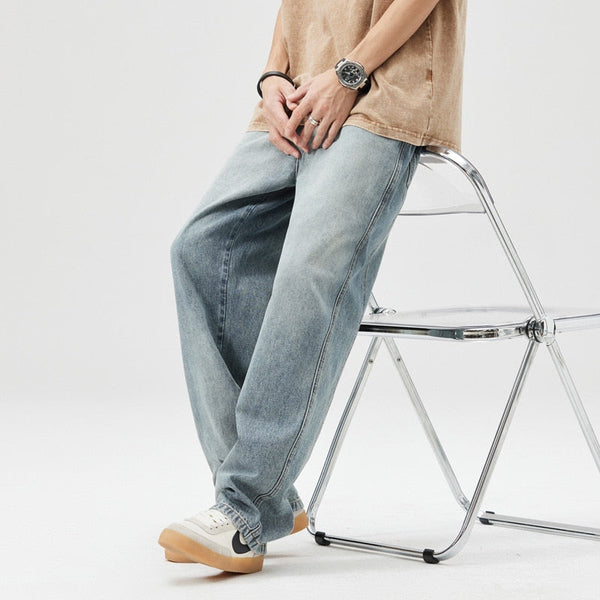 Men's Summer Casual Blue Straight Loose Fashion Micro Span Jeans Trousers