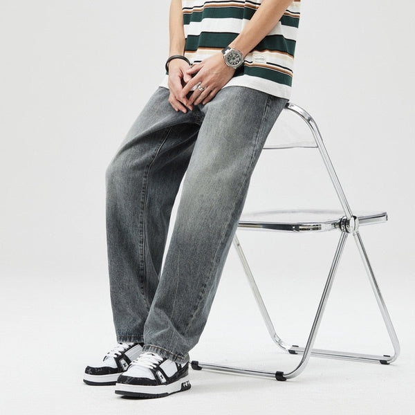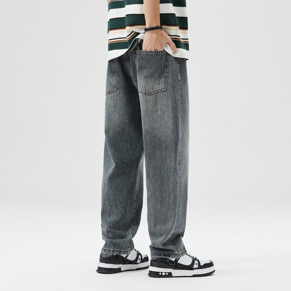 Men's Teen Personality Micro Span Simple Straight Loose Jeans Trousers