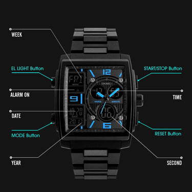 Men's Waterproof Digital LED Chrono Quartz Watches with 50M Waterproof