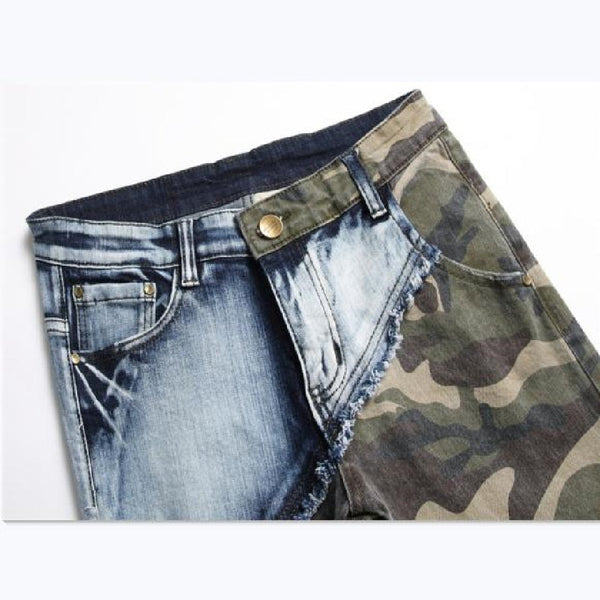 Men's Winter Camouflage Patchwork Slim Fit Fur-edge Pocket Jeans