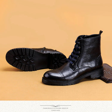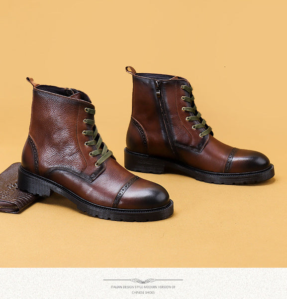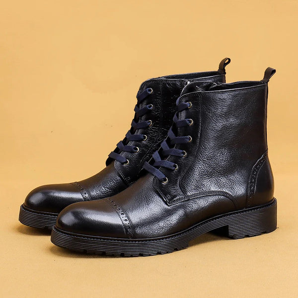 Men's Winter Casual Genuine Leather Round Head Waterproof Boots