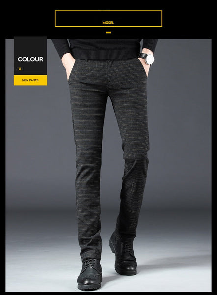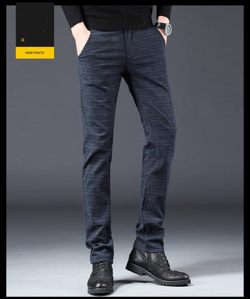 Men's Winter Korean Style Striped Straight Slim Fit Classic Casual Pants