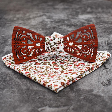 Men's Wooden Bow Tie Handkerchief Pocket Square Set for Wedding Suit