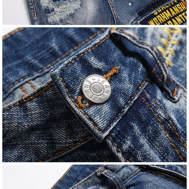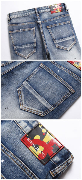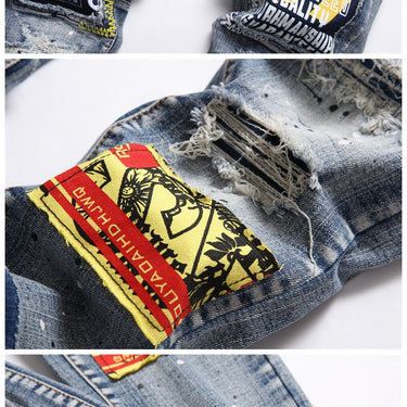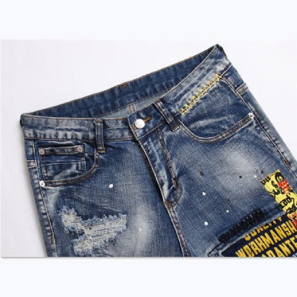 Punk Style Printed Pattern Mid-waist Ripped Skinny Jeans Pants for Men
