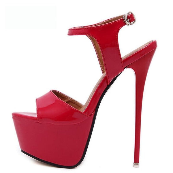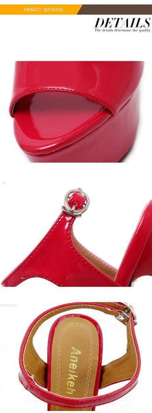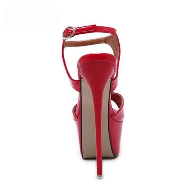 Red Summer Style Sexy High Heels Open Toe Buckles Nightclub and Party Pumps