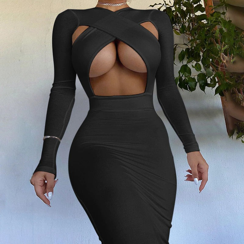 Sexy Elastic Warm Bodycon Bandage Midi Club Dress with Long Sleeve