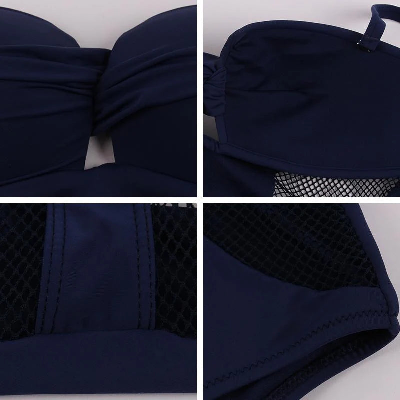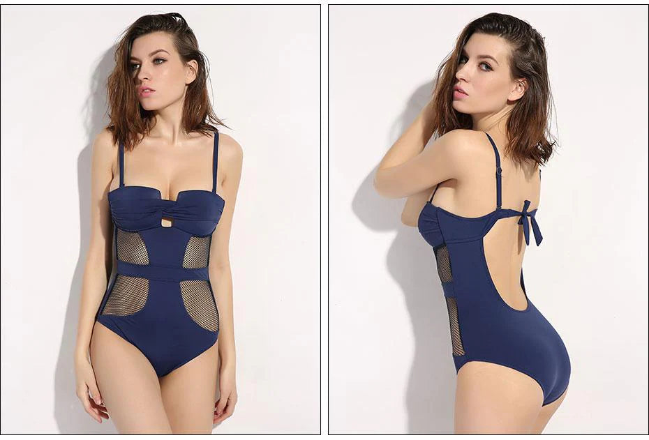 Sexy Mesh Hollow Out One Piece Bathing Bodysuit Swimwear for Women