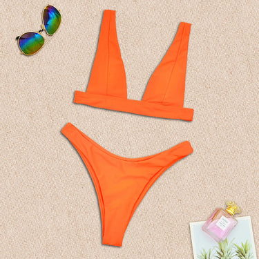 Sexy Neon Halter Bikini Thong Micro Swimsuit High Cut Push up Swimming Set