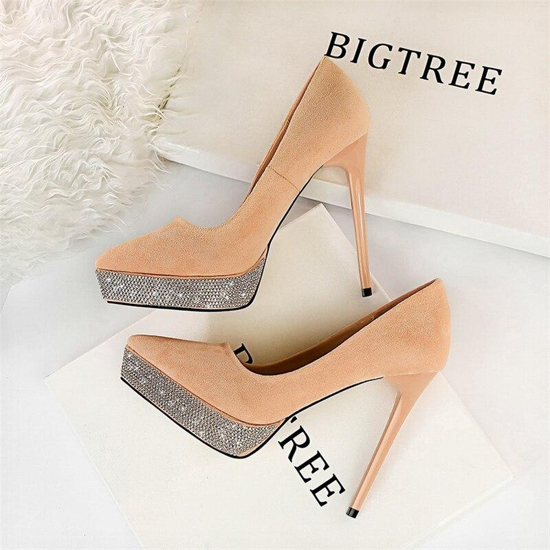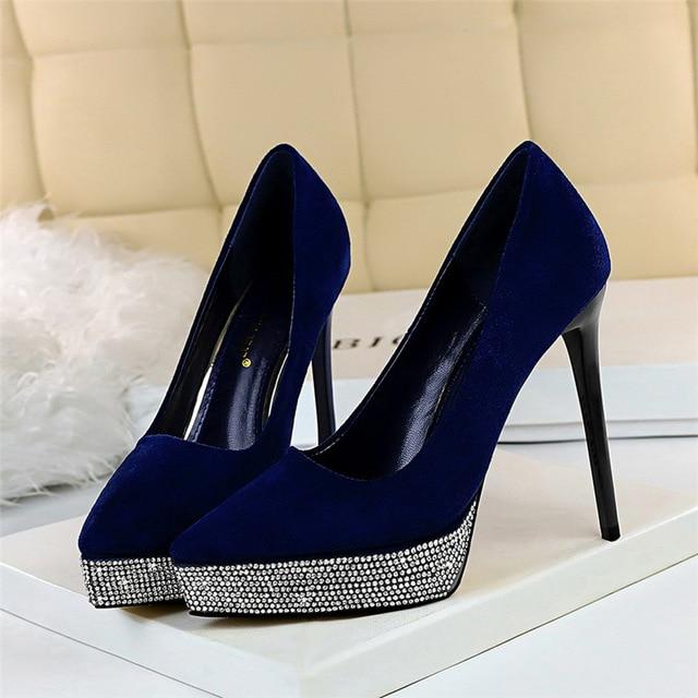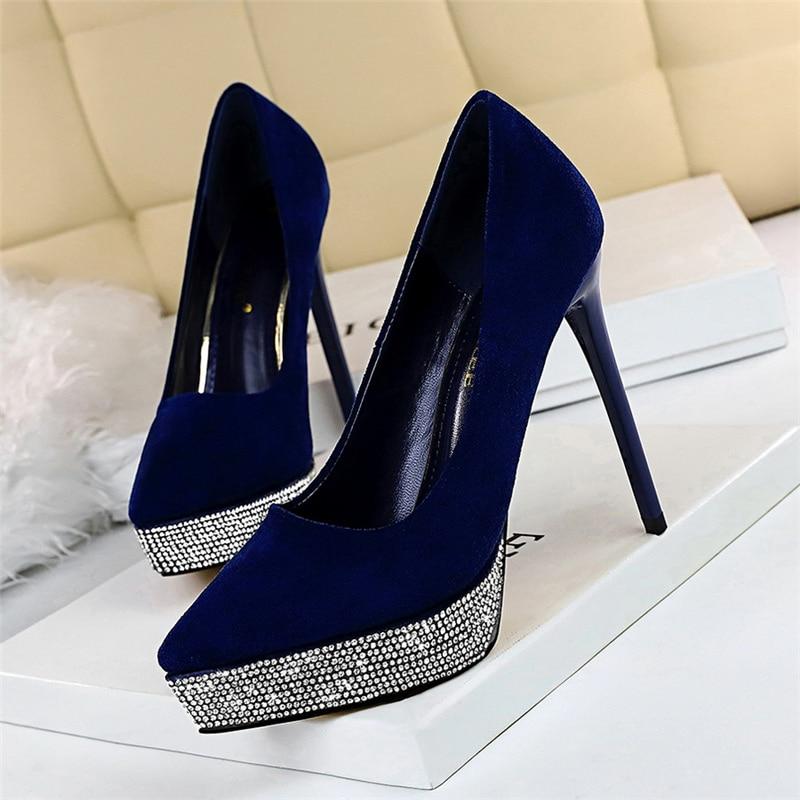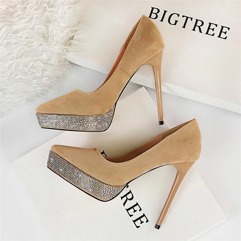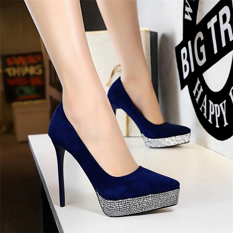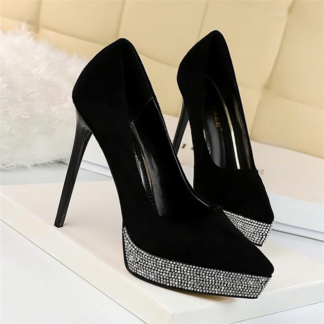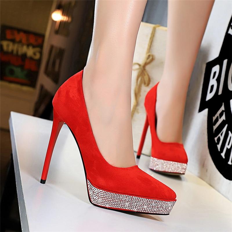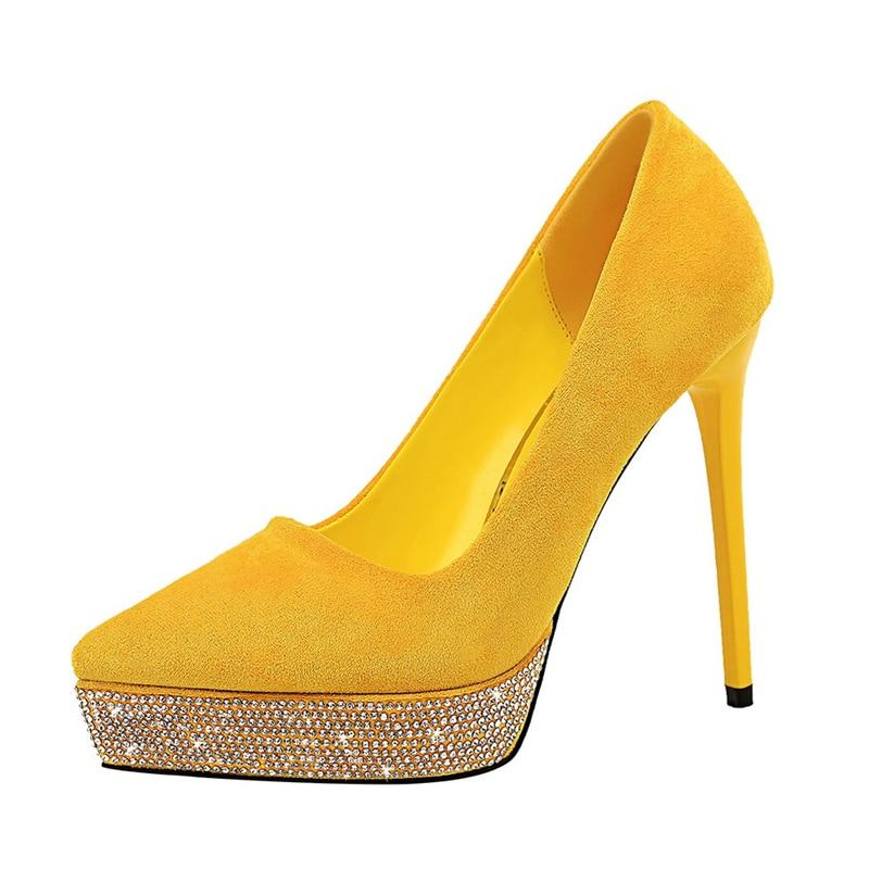 Crafted to perfection, the top-notch design of these bling platforms will transform your party look. Created in vivid colors like yellow and green, these glittering pumps are made using flock upper material and lined with synthetic leather. Adding to their appeal are the stunning high heels that are fitted on sturdy rubber outsoles. This sexy pair of stilettos is all you need to look and feel your best this season!