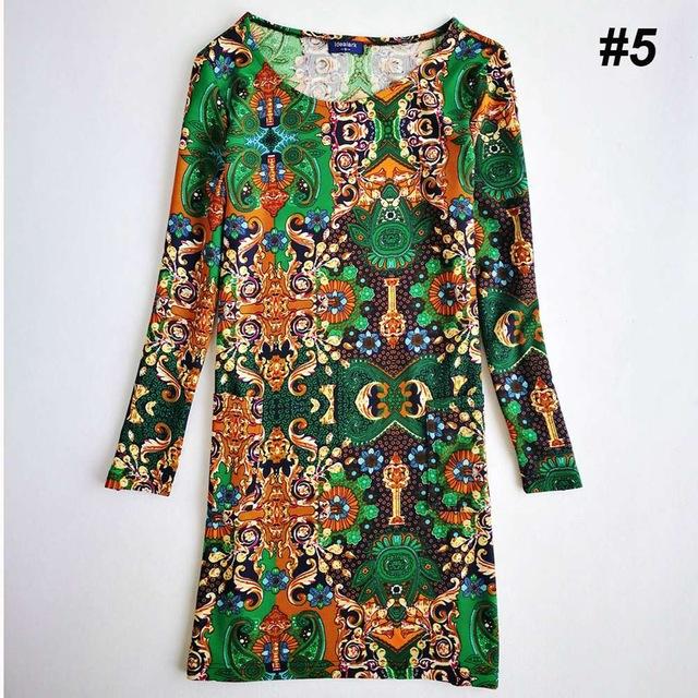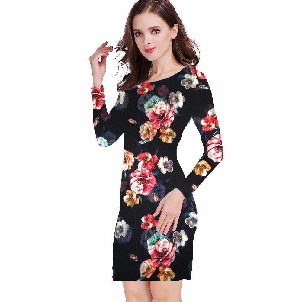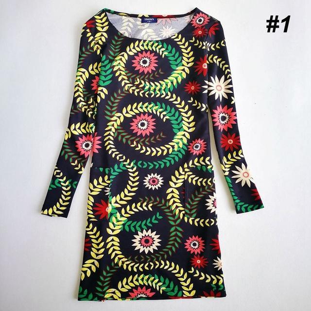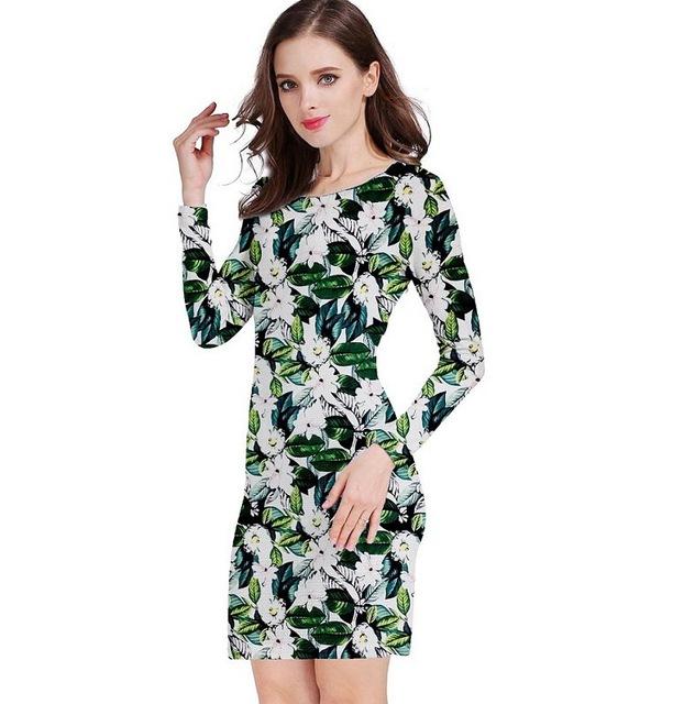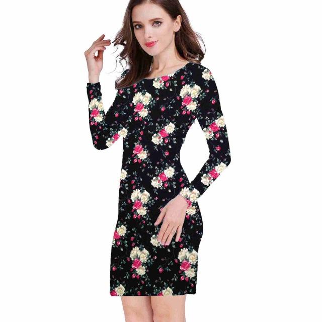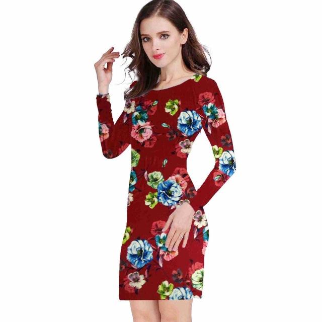Spring Fashion Ladies Flower Printed Long Sleeve Casual Dress