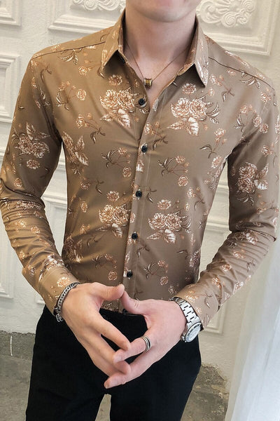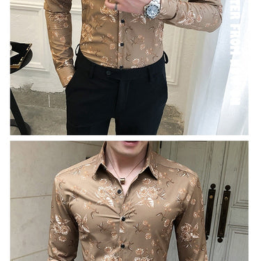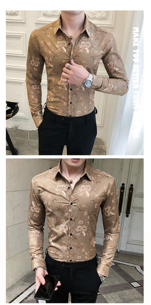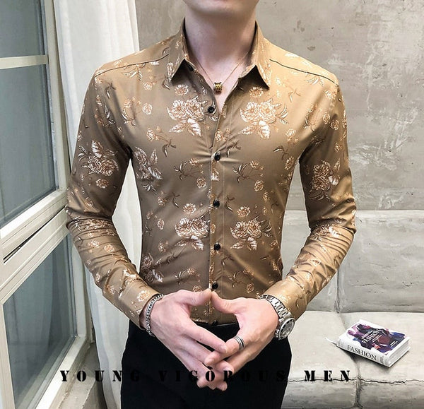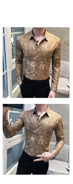 Spring Fashion Long Sleeve Slim Fit Luxury Digital Printed Shirts for men