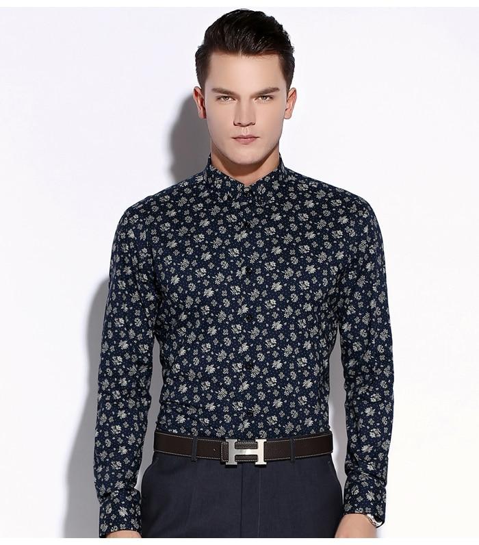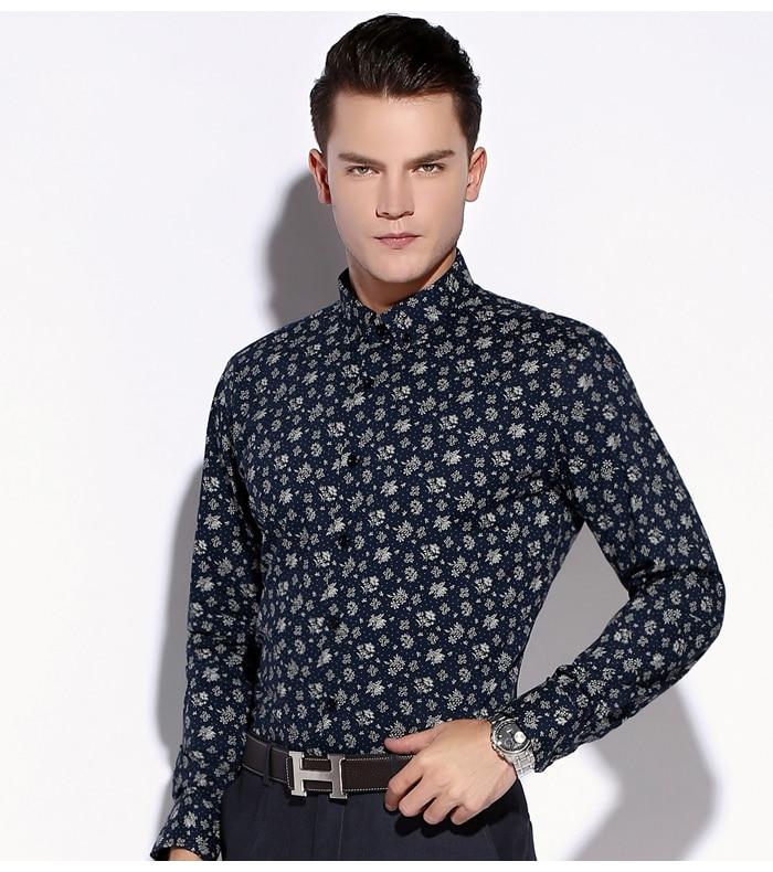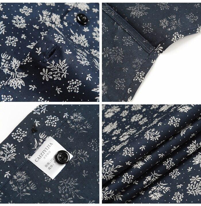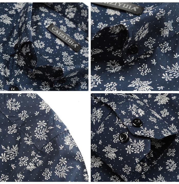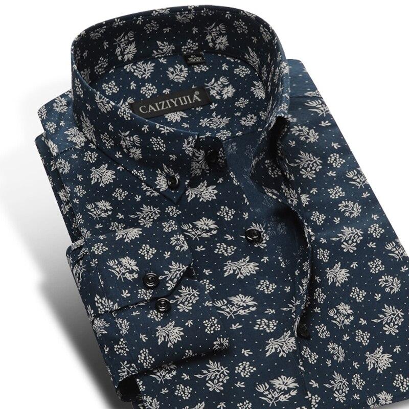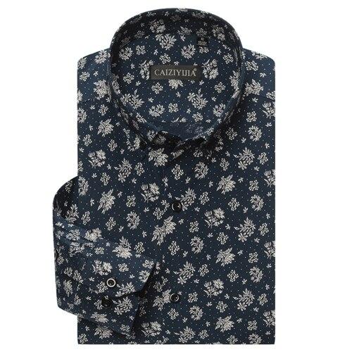 Standard Fit Button Floral Printed Long Sleeve Cotton Shirts for Men