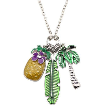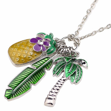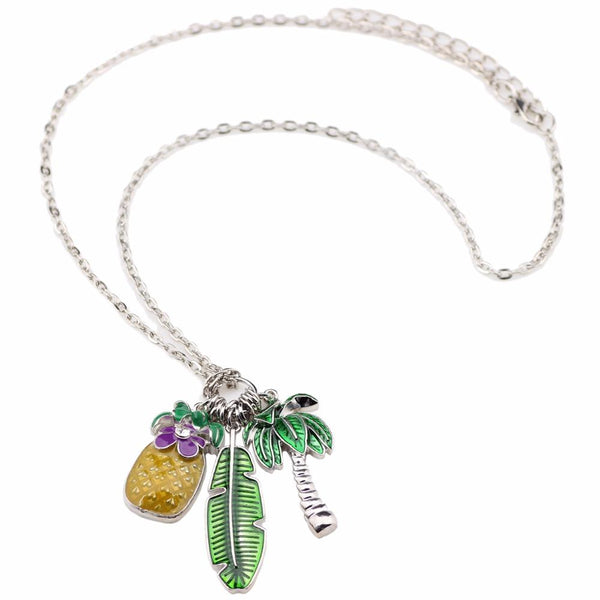 Summer Alloy Green Coconut Tree Pineapple Necklace Chain Enamel Jewelry