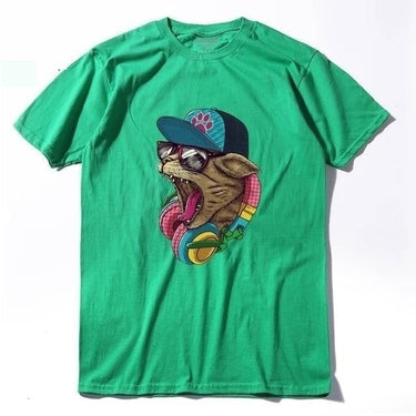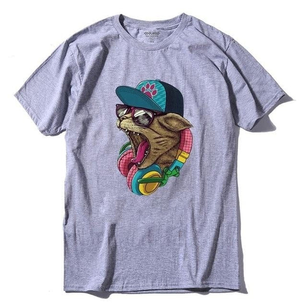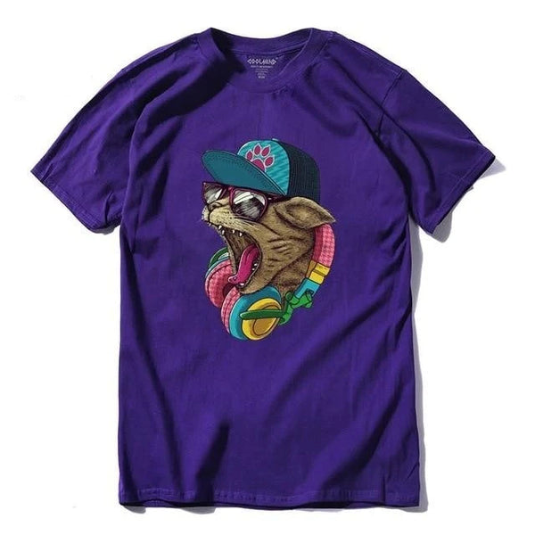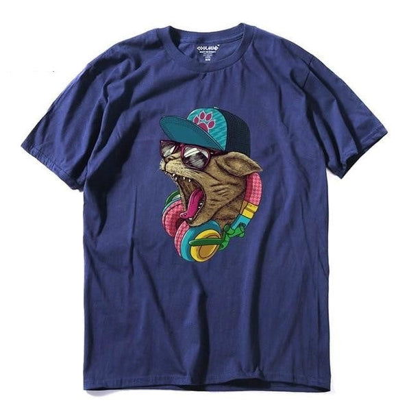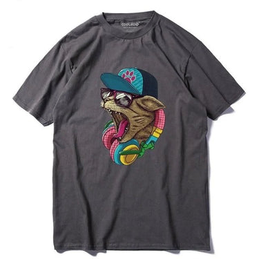 Summer Loose Street Style Music Cat Printed Cotton T-Shirt for Men