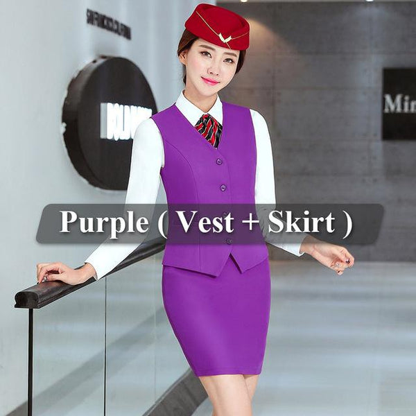 Two-Piece Business Formal Blue Skirt Suit for Women with Sleeveless Vest