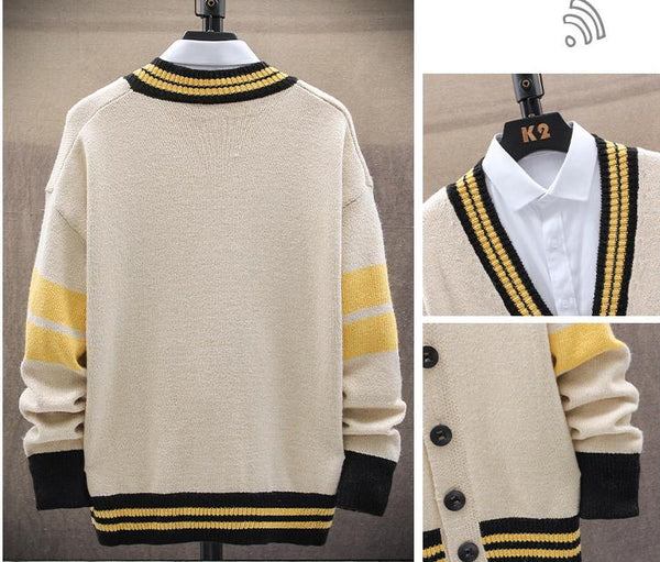 Winter Casual V Neck Loose Fit Knitted Cardigan Sweater for Men