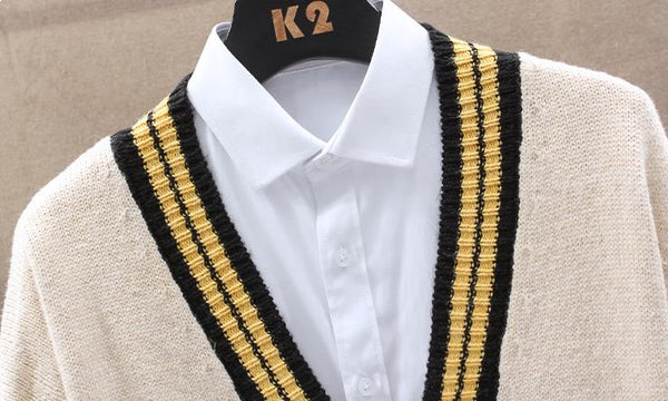 Elevate your winter wardrobe with this stylish and comfortable cardigan for men. Crafted from a blend of high-quality acrylic, cotton, and spandex, it offers long-lasting comfort. The v-neck collar adds a touch of sophistication, while the striped pattern adds a modern twist. With its single-breasted closure, this computer-knitted cardigan is perfect for casual occasions. Don't wait any longer - upgrade your style now!