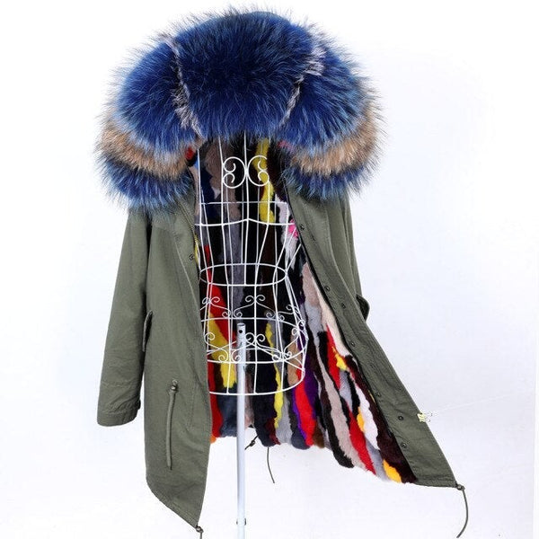 Winter Fashion Fur Collared Hooded Jacket with Removable Fur Lining for Women