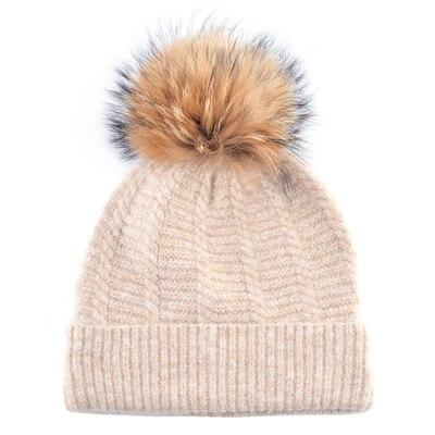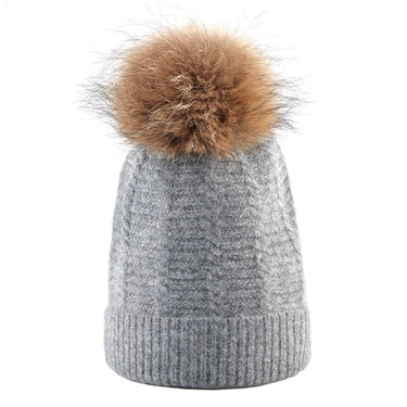 Winter Fashion Warm Casual Fur Pom Pom Knitted Beanies for Women