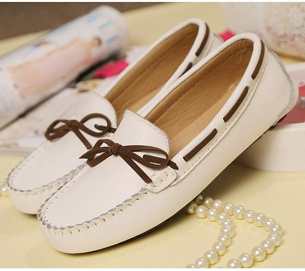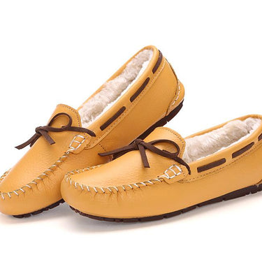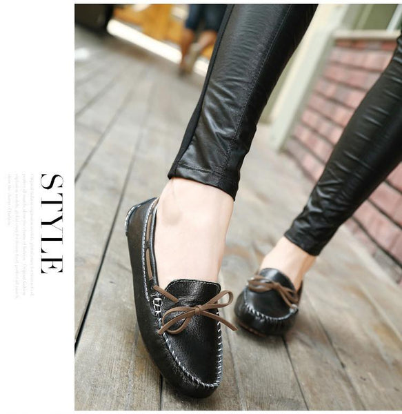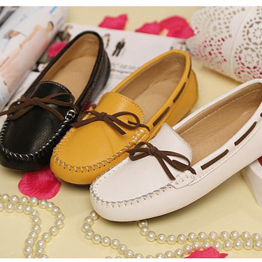 Butterfly-knot Shoes Woman: Women Boat Shoes, Low Heel, Leisure, Leather Loafers, Keep Warm