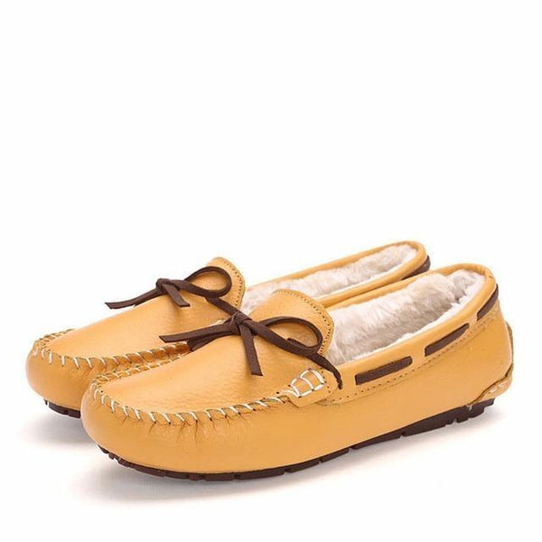 Women's Cow Leather Warm Plush Fur Slip-on Flats Moccasins Loafers Shoes