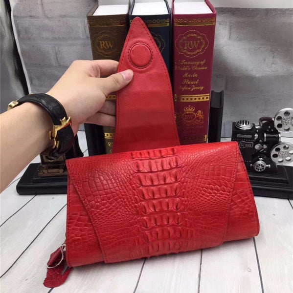 Women's Fashion Genuine Crocodile Leather Foldable Clutch Handbags