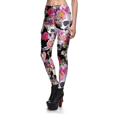 Women's Fashion Jasmine Flowers Skull Digital Printed Stretchy Leggings