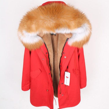 Women's Fox Fur Leather Large Hooded Long Detachable Lining Coats & Jackets