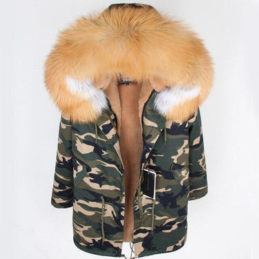 Women's Large Hooded Long Detachable Fox Fur Leather Lining Coats & Jackets