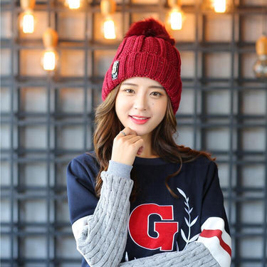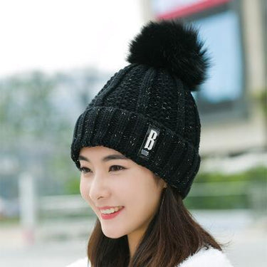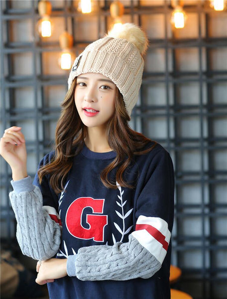 Women's Letter Knitted High Quality Rabbit Fur Hat for Winter Ski
