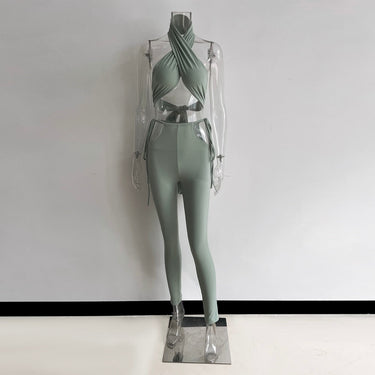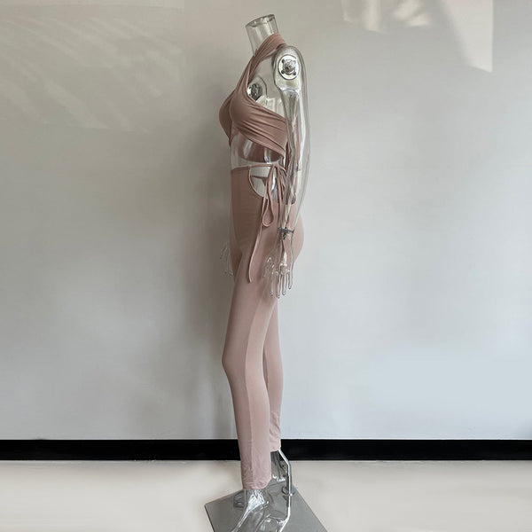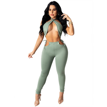 Women's Sexy Halter Neck Tank Tops Tie Up Pencil Trousers Two Piece Sets