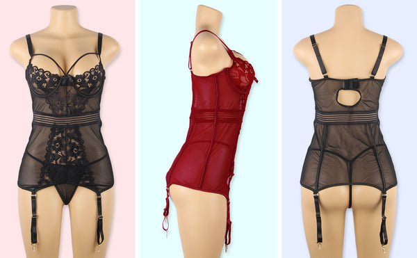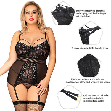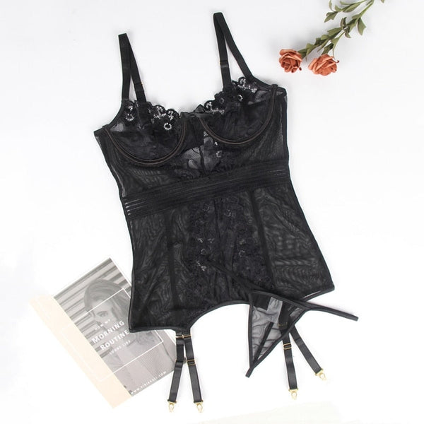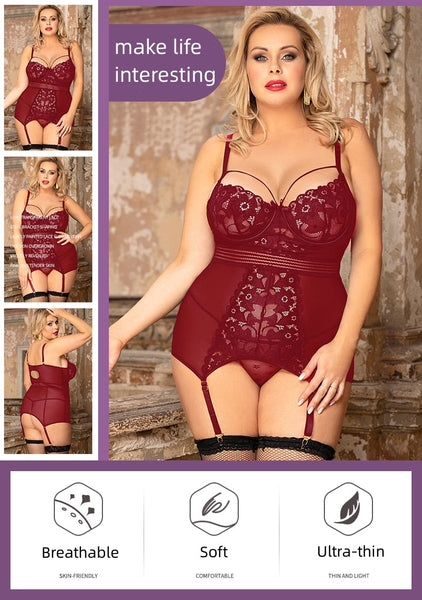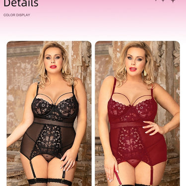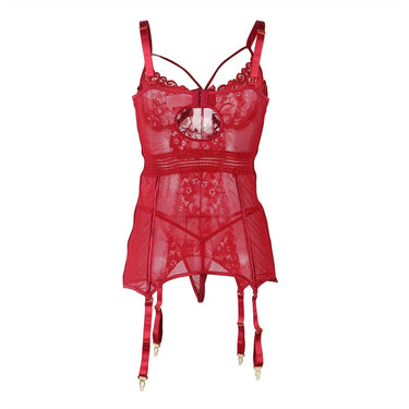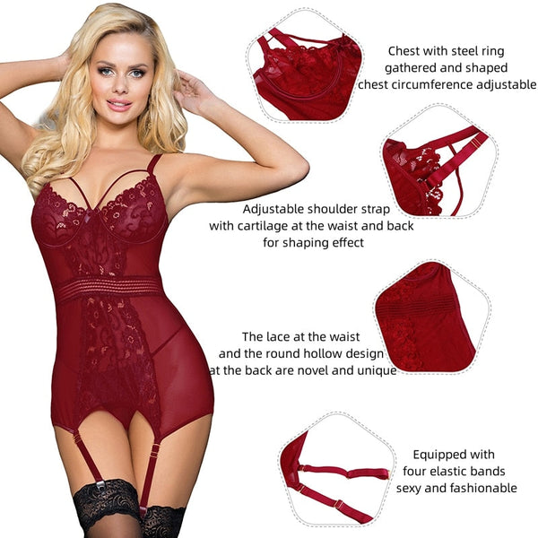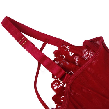 Women's Spring Lace Floral Pattern V-Neck Gartered Baby Doll Lingerie