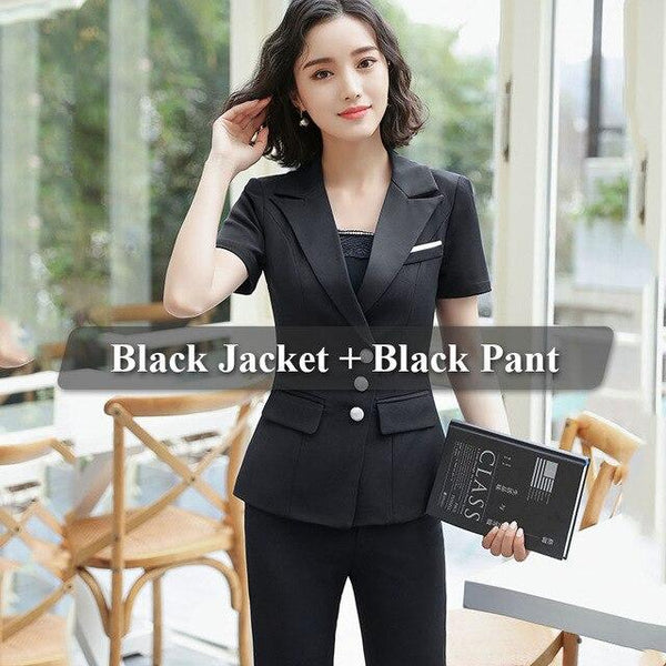 Women's Summer Fashion V-neck Formal Uniform Style Pantsuit 2 Pieces Set