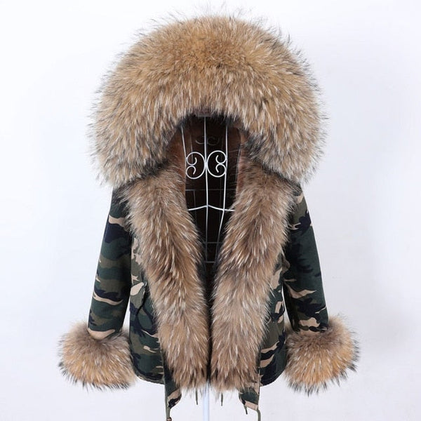 Women's Thick and Warm Parkas with Natural Racoon Fur Sleeves and Collar