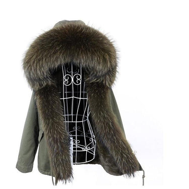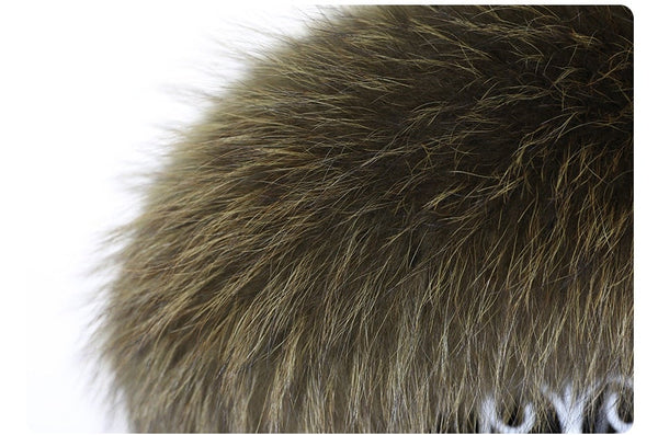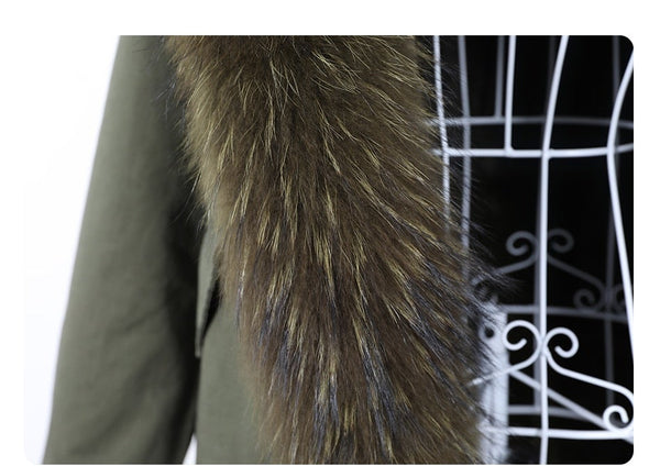 Women's Thick Warm Racoon Fur Collared Zipper closed Hooded Winter Jacket