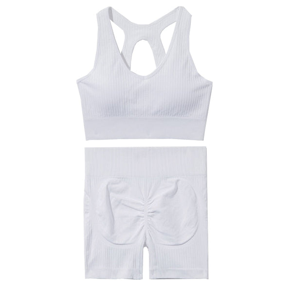 Women's White Seamless Bra and Shorts Workout Yoga 2Pcs Outfit Set