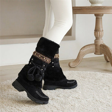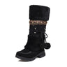 Women's Winter Fashion Flock Round Toe Warm Casual Mid Calf Snow Boots