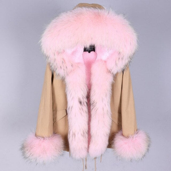 Women's Winter Style Natural Racoon Fur Long Sleeves and Fur Collar Parkas