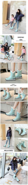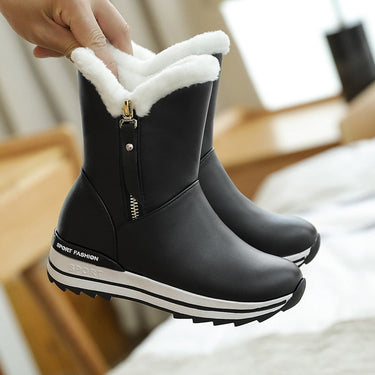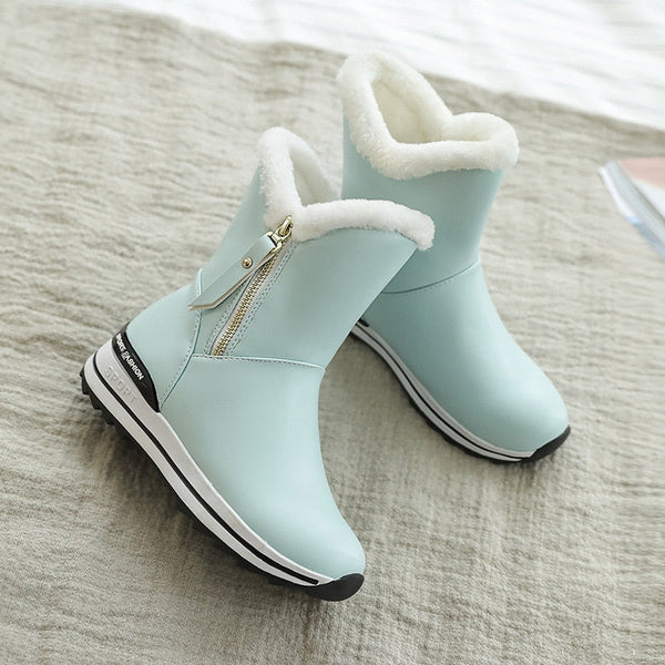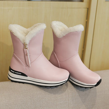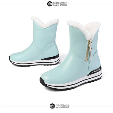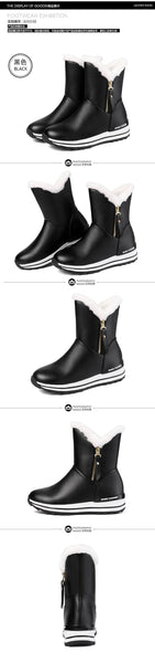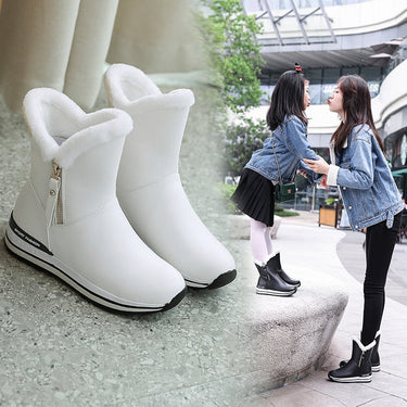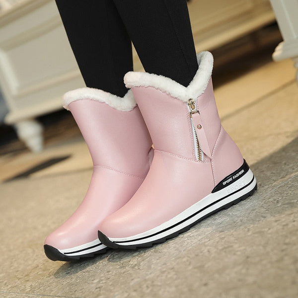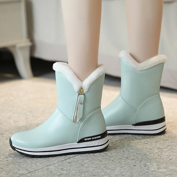 Women's Winter Synthetic Leather Mid-Calf Fur Waterproof Ankle Snow Boots