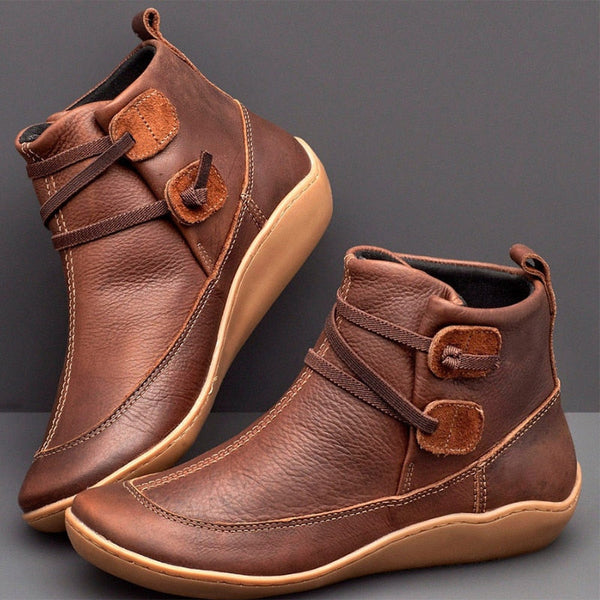 Elevate your style with these trendy lace-up boots. Crafted from genuine leather, they feature a round toe shape and solid pattern, perfect for the winter season. The TPU outsole offers durability and traction, while the flat heel and plush insole provide comfort. Make a stylish statement with these women's ankle boots.