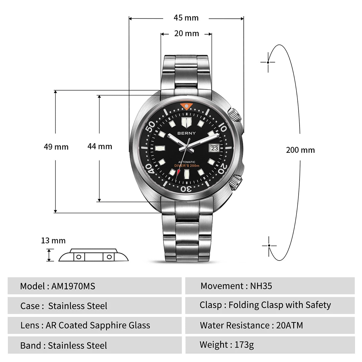 Automatic Super Luminous 20ATM Waterproof Compressor Swimmer Diver Mechanical Watch for Men