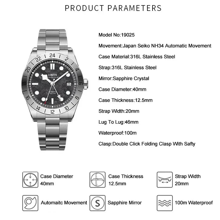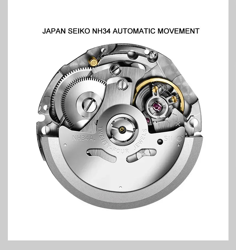 Men's Luminous 40mm Dial Automatic Mechanical 100m Waterproof Diver Watch