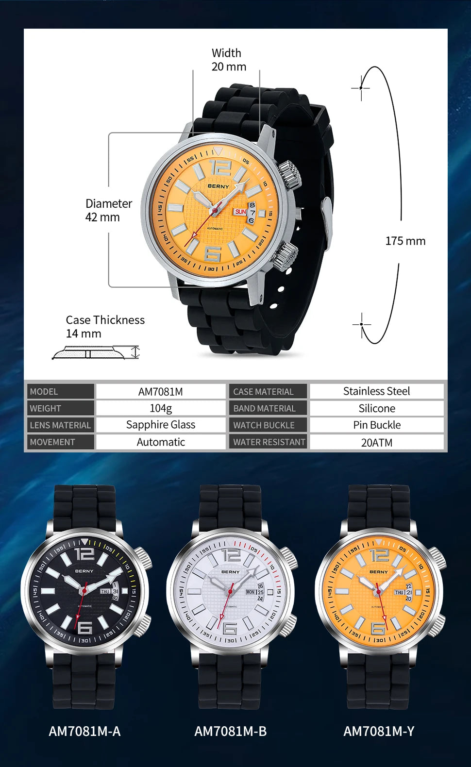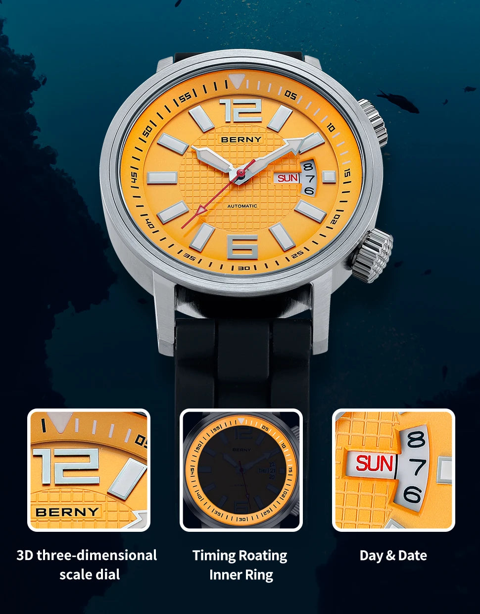 Feature: water proof,Complete Calendar,DIVER,Week Display