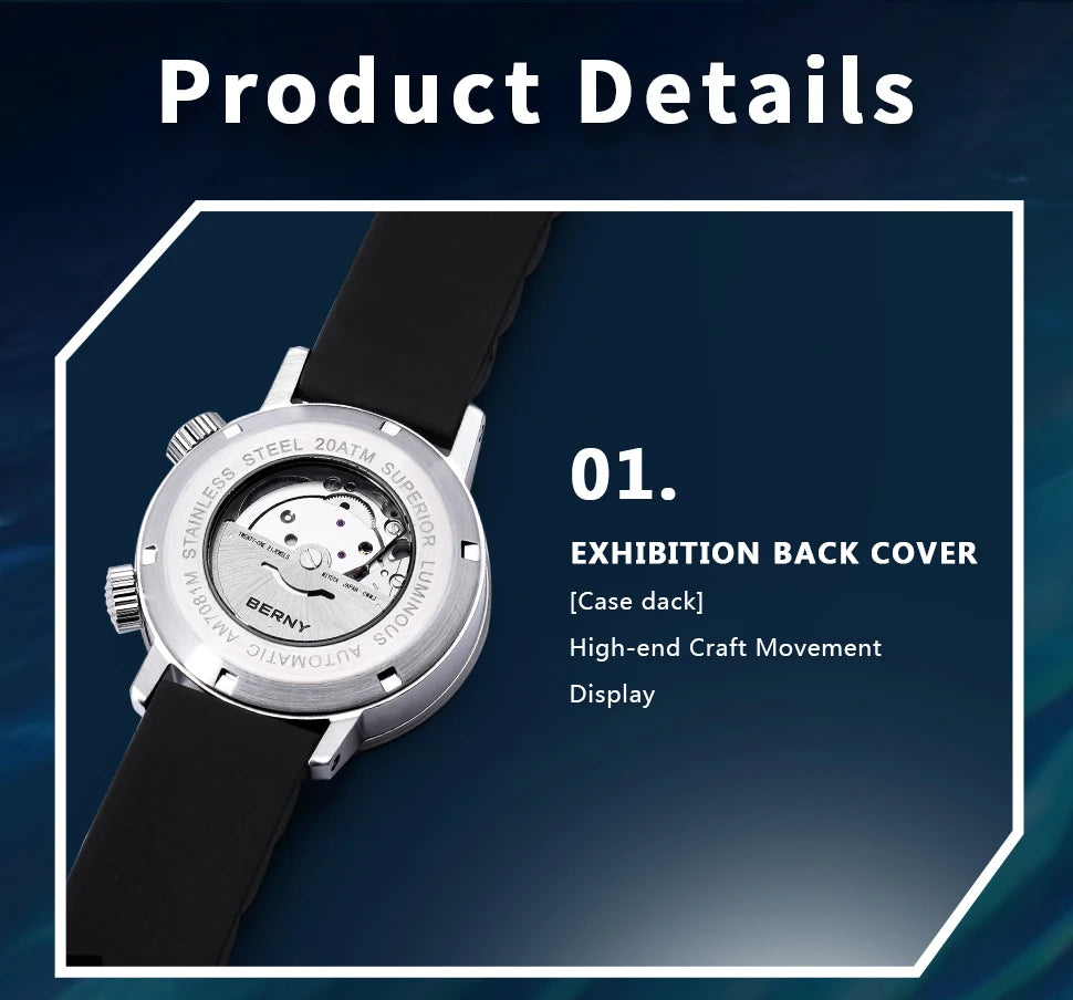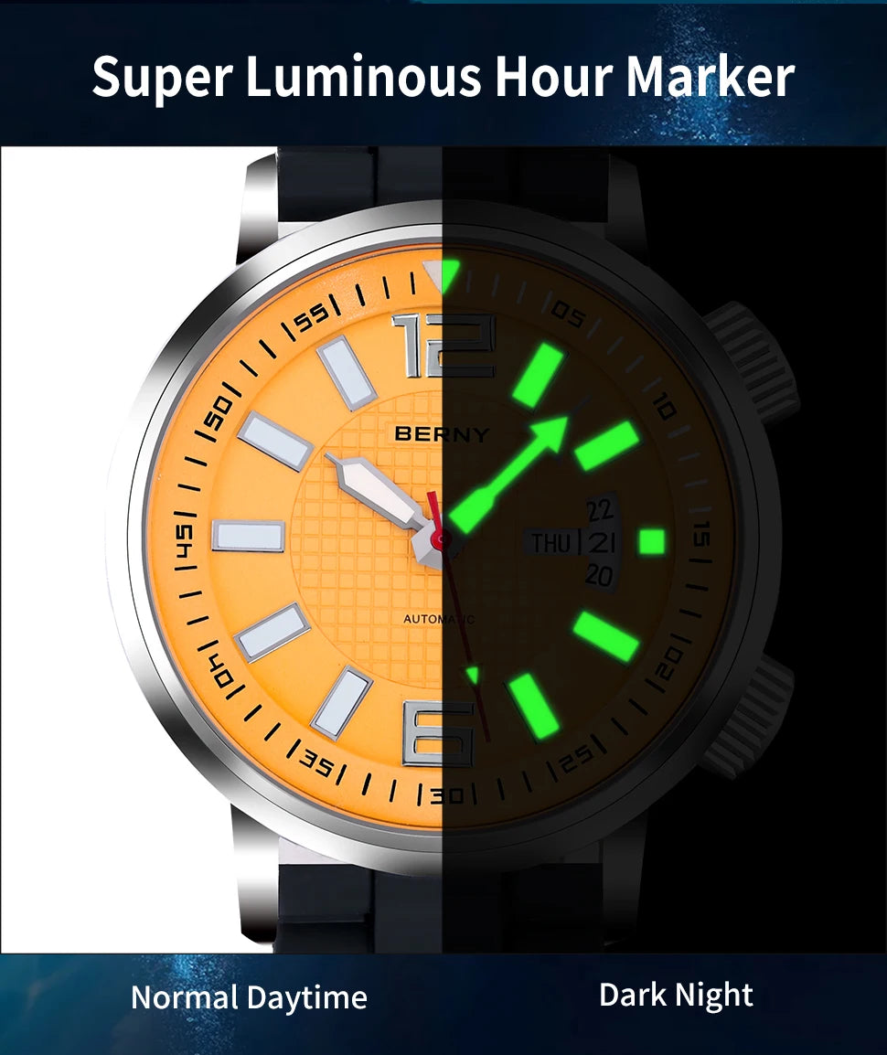 Men's Super Luminous Sapphire Lens 20ATM Waterproof Calendar Automatic Mechanical Wristwatch