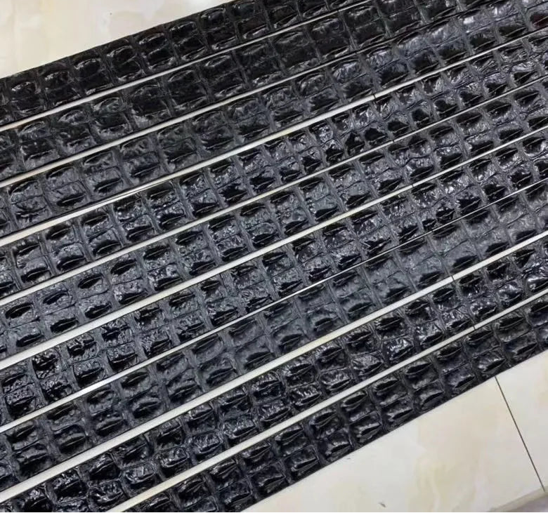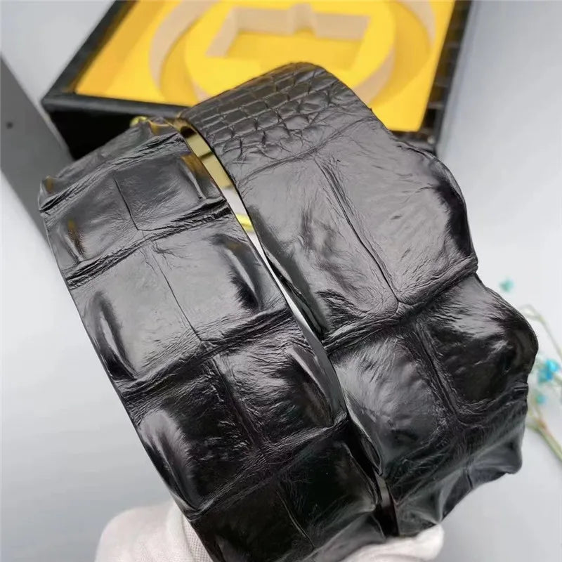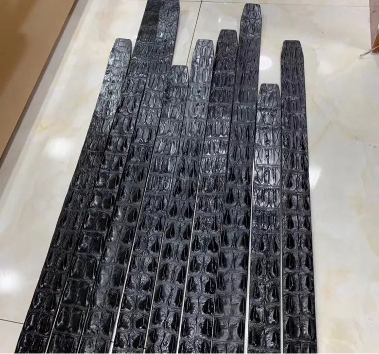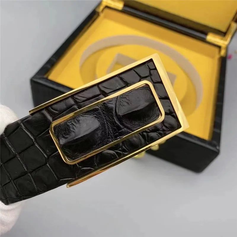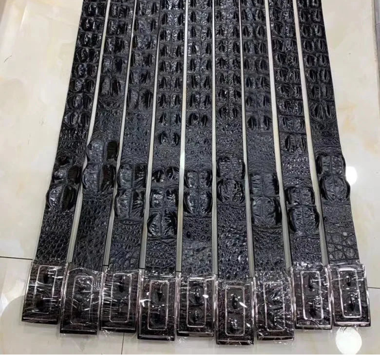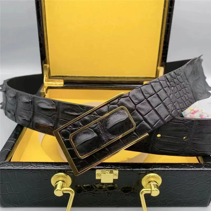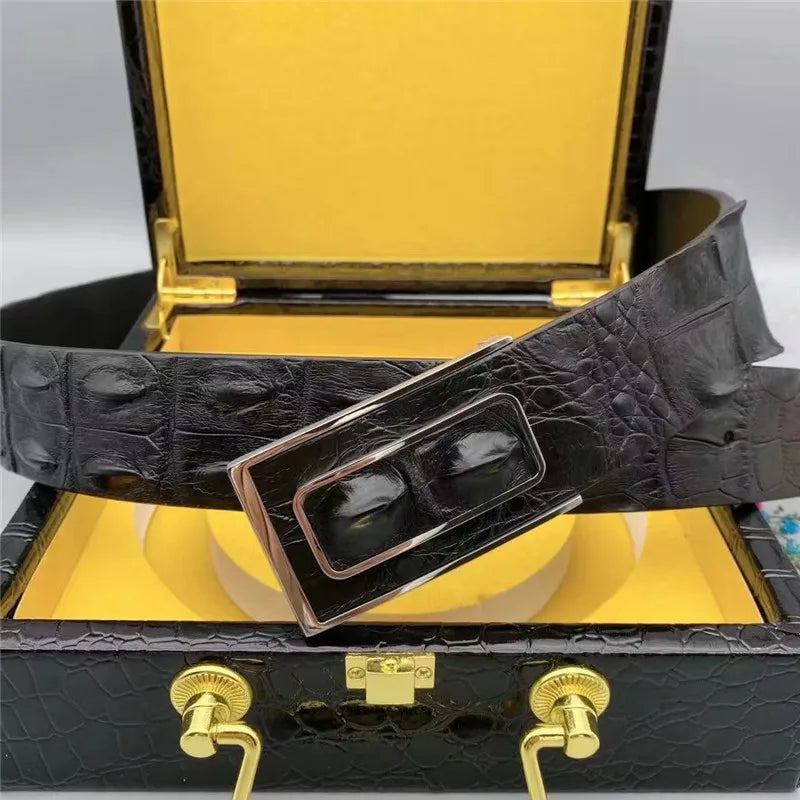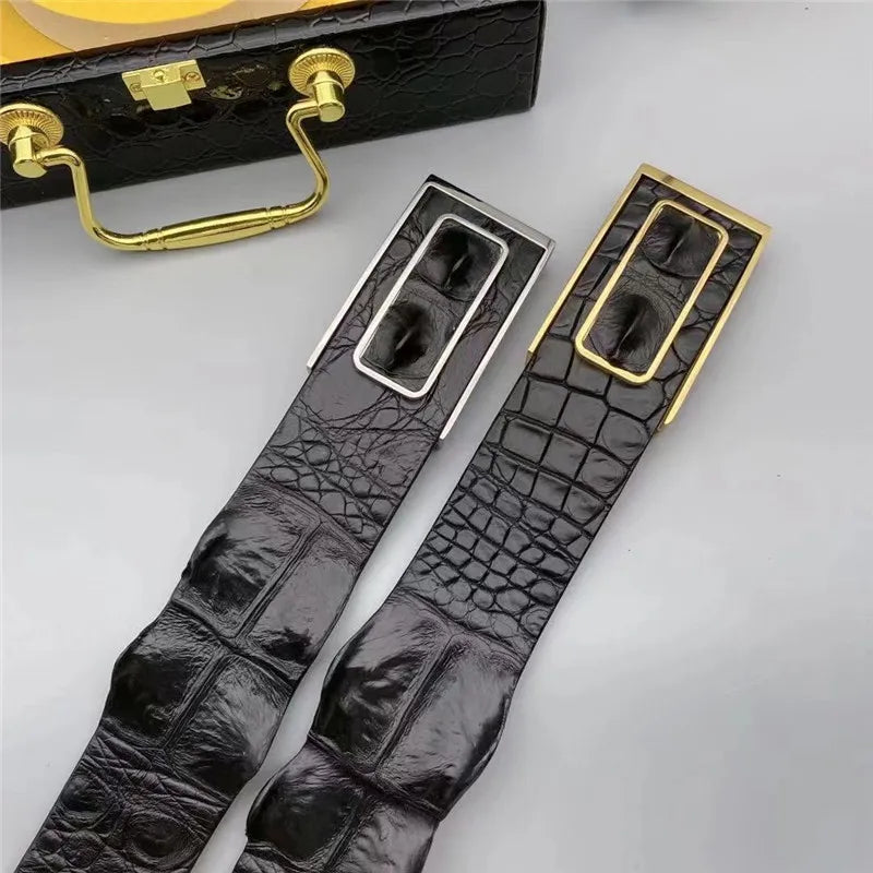 Exotic Alligator Leather Strap Steel Rectangle Buckle Men's Belt