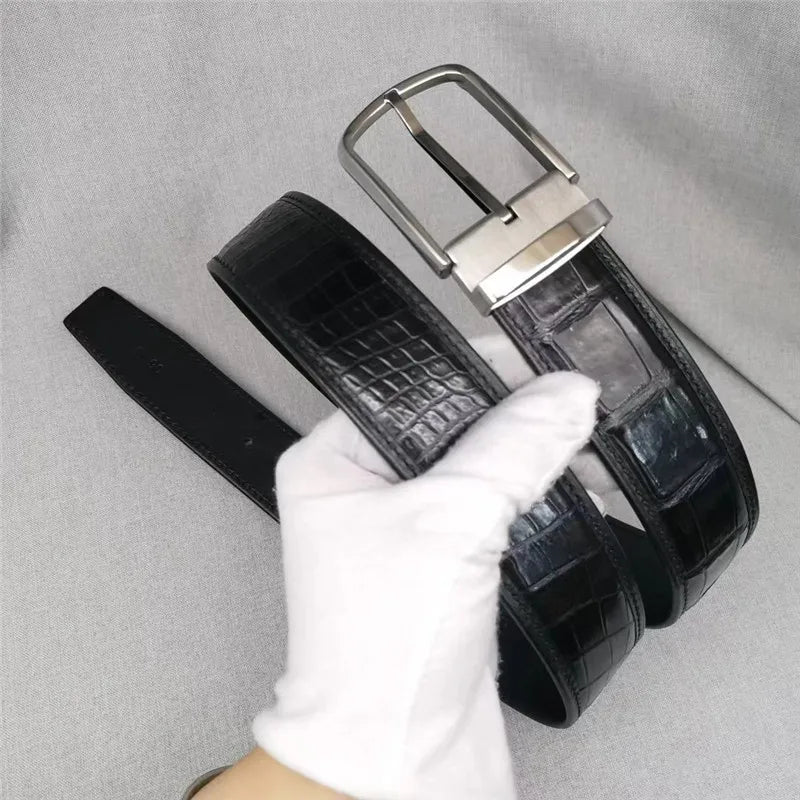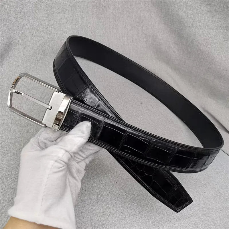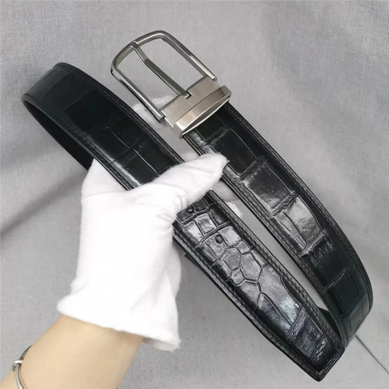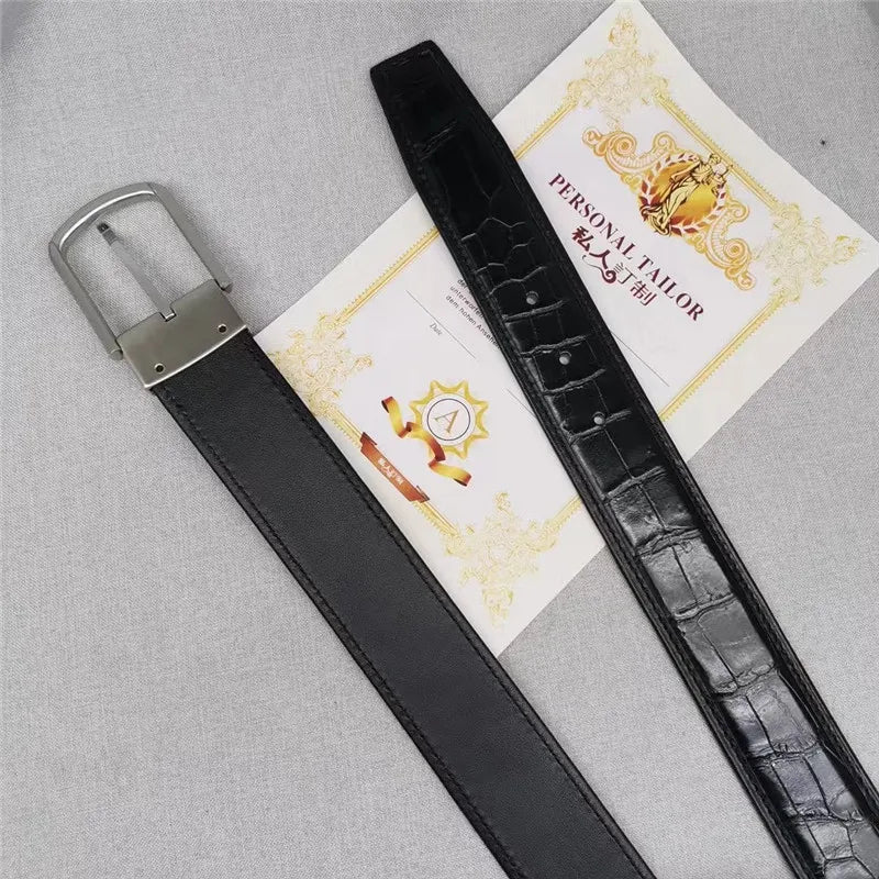 Men's Classic Fancy Crocodile Skin Strap Steel Pin Buckle Belt