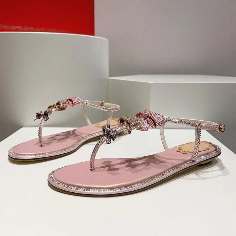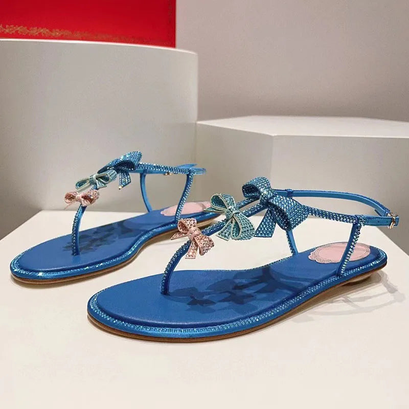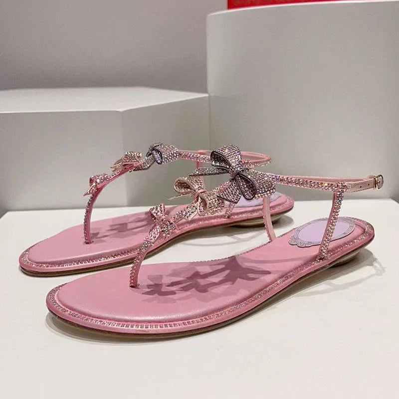 Women's Rhinestone Ankle Buckle Strap Sweet Butterfly-knot Flat Party Sandals