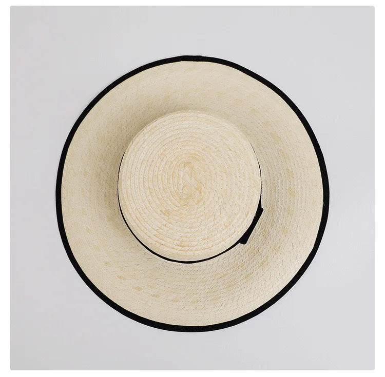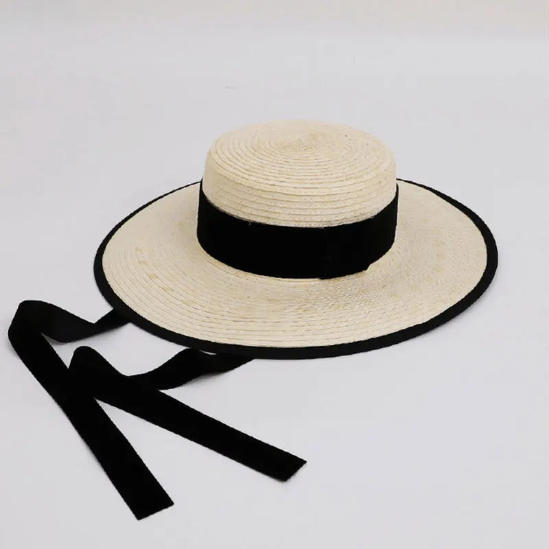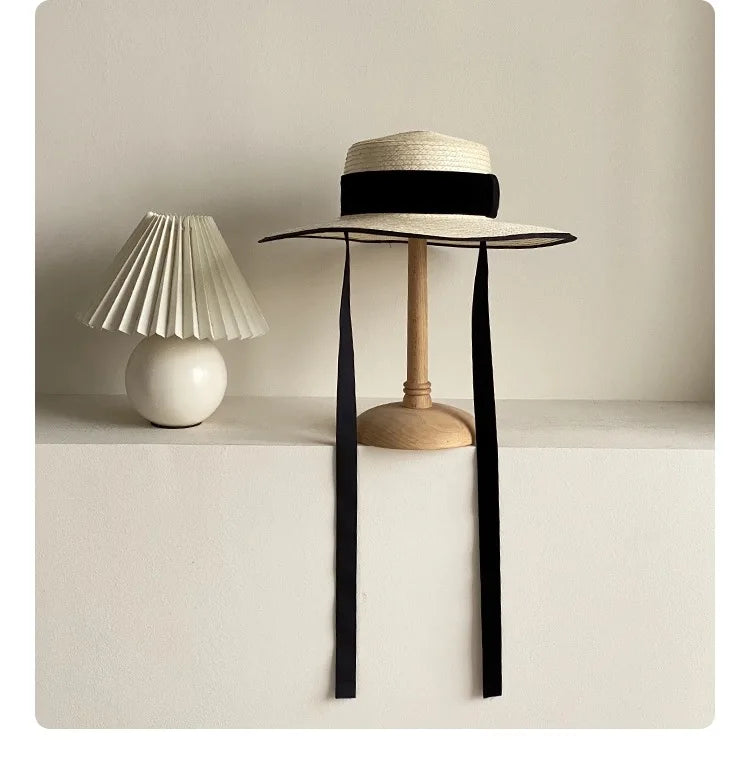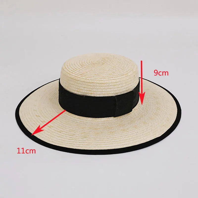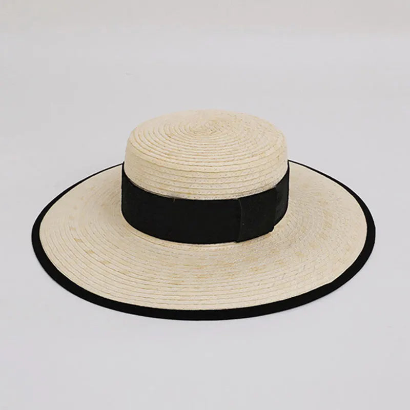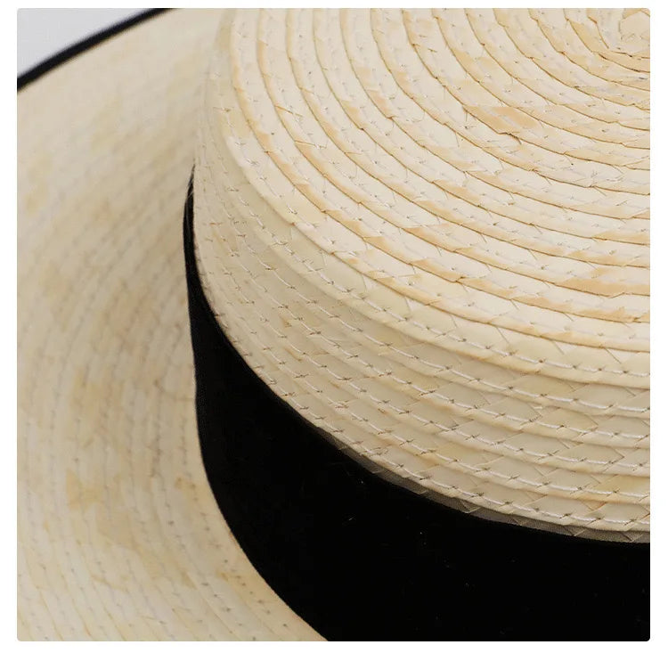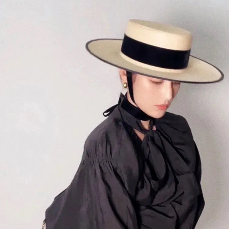 Handmade Vintage Sunflower Grass Black Ribbon Flat Top Peaked Hat for Women